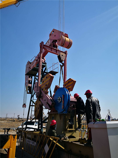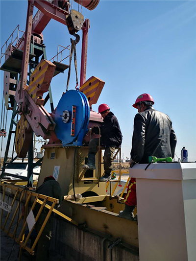 抽油機(jī)用永磁半直驅(qū)同步拖動(dòng)裝置由半直驅(qū)同步電動(dòng)機(jī)、同步電動(dòng)機(jī)變頻控制箱和連接支撐三部分組成。 同步電動(dòng)機(jī)專(zhuān)為油田游梁抽油機(jī)設(shè)計(jì)的低速大轉(zhuǎn)矩永磁同步電動(dòng)機(jī),利用超薄機(jī)身(160mm),自然冷卻,直接驅(qū)動(dòng)減速箱輸入軸,**節(jié)能,**可靠。變頻控制柜采用新一代高性能開(kāi)環(huán)矢量變頻器,采用DSP芯片為控制核心,保證產(chǎn)品的可靠性和對(duì)各種環(huán)境的適應(yīng)性,功能強(qiáng)大,使用靈活,**沖次可以**到0.1次/分鐘。